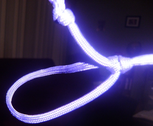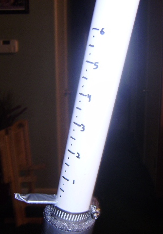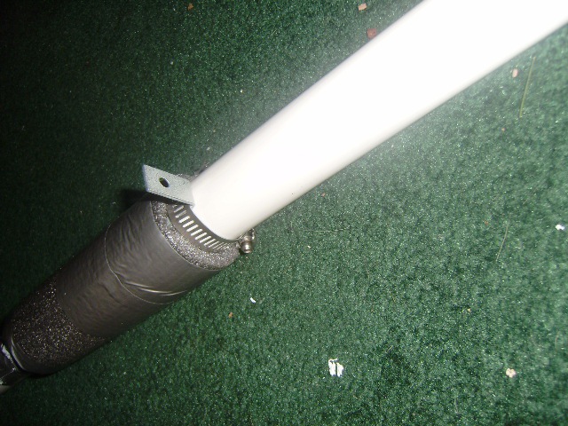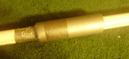 We want to put the handle (the 6" insulation) on the bow just a little above its center of gravity, so that, when you're holding the bow, it has a slight tendency to right itself, but not so strong that you can't tilt the bow easily. So balance the bow on your finger to find where the center of gravity is, and duct tape the insulation so that, when you hold the bow, you will be holding it an inch or two above the center of gravity. Attach the insulation to the bow at the bottom end, but not the top end. (The choice of top and bottom is arbitrary.)