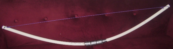Bore holes through the PVC pipe at each end, slide a bolt through, and fasten with a nut, leaving maybe a quarter inch of play on either side. The bolts are there to hold the string, so make sure the bolts are parallel. You now have a bow. You could string it and start shooting at this point if you wanted, but the rest of these instructions will make it awesome cool at least a little bit better.